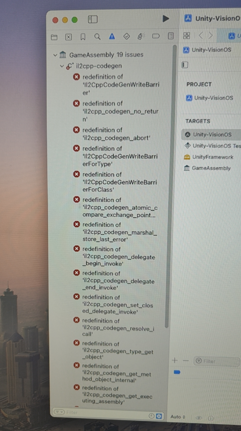 Unity Apple Vision Pro 开发问题:Xcode 打包报错 redefinition of '112CppCodeGenWriteBarrier'