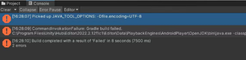 原因:unity打包apk的时候会自动检查所需要的安卓sdk,没有的会自动联网下载,而国内用户可能会因为代理问题而导致这个过程失败(开VPN偶尔也会无效)。