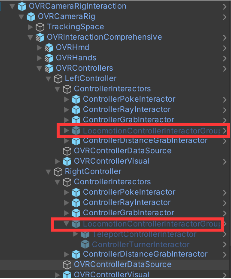 最后,取消玩家物体身上原有的传送和转向功能,可以把下图所示的物体隐藏:
